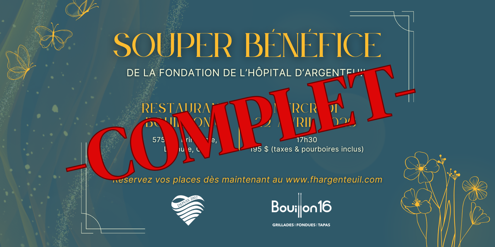 La Fondation de l’Hôpital d’Argenteuil est heureuse d’annoncer la tenue de son souper-bénéfice, qui aura lieu le mercredi 22 avril 2026, au restaurant Le Bouillon 16, à Lachute. Au menu : un souper gastronomique 5 services, imaginé par le chef Sylvain Leseize.